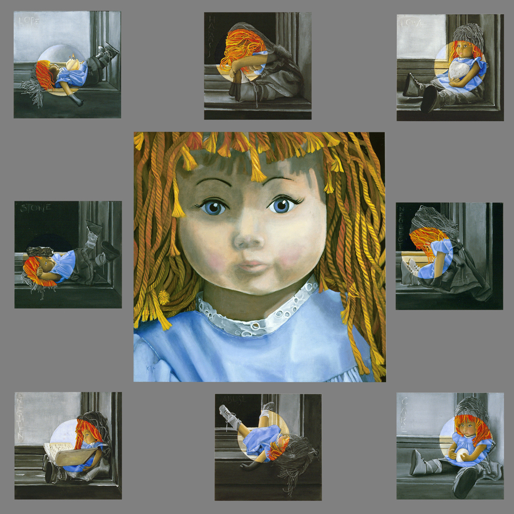 oil on canvas 1 pcs 70x70 cm, 8 pcs 30x30cm, oil on canvas, US$ 6.000,-(all