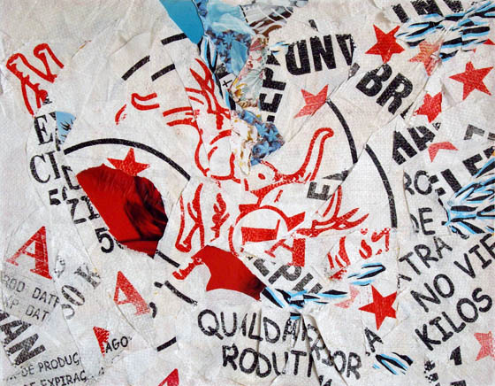 Menthe Reglisse, teared rice bag and candies papers on bord 43x55 cm.