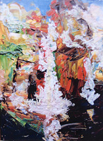 peindre avec ses doigts, n'apportant qu'une dernière touche de