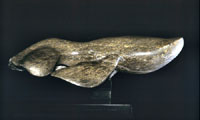 1.contrappasto 2, 2003 steel, 35x15x1 cm. 2.fatman (up to his neck in it), 2005 cast cement, steel & bullshit(not incuded in photo)184x60x60 cm.. 3.man in tank 2, 2001 steel, glass & water, 60x30x25 cm. 4.Whale, 1997 Alabaster 80x45x45 cm.