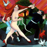 1.Hello, 2002 Acrylic on canvas 76x76 cm . NFS 2.The Angels Have Left the Building, 2005 Acrylic on canvas 9,20x10,66 cm., US$1500 3.Eve, 2003 Acrylic on canvas 92x92 cm., US$ 1600 4.The Ventriloquist, 2003 Acrylic on canvas 122x102 cm., US$ 2000